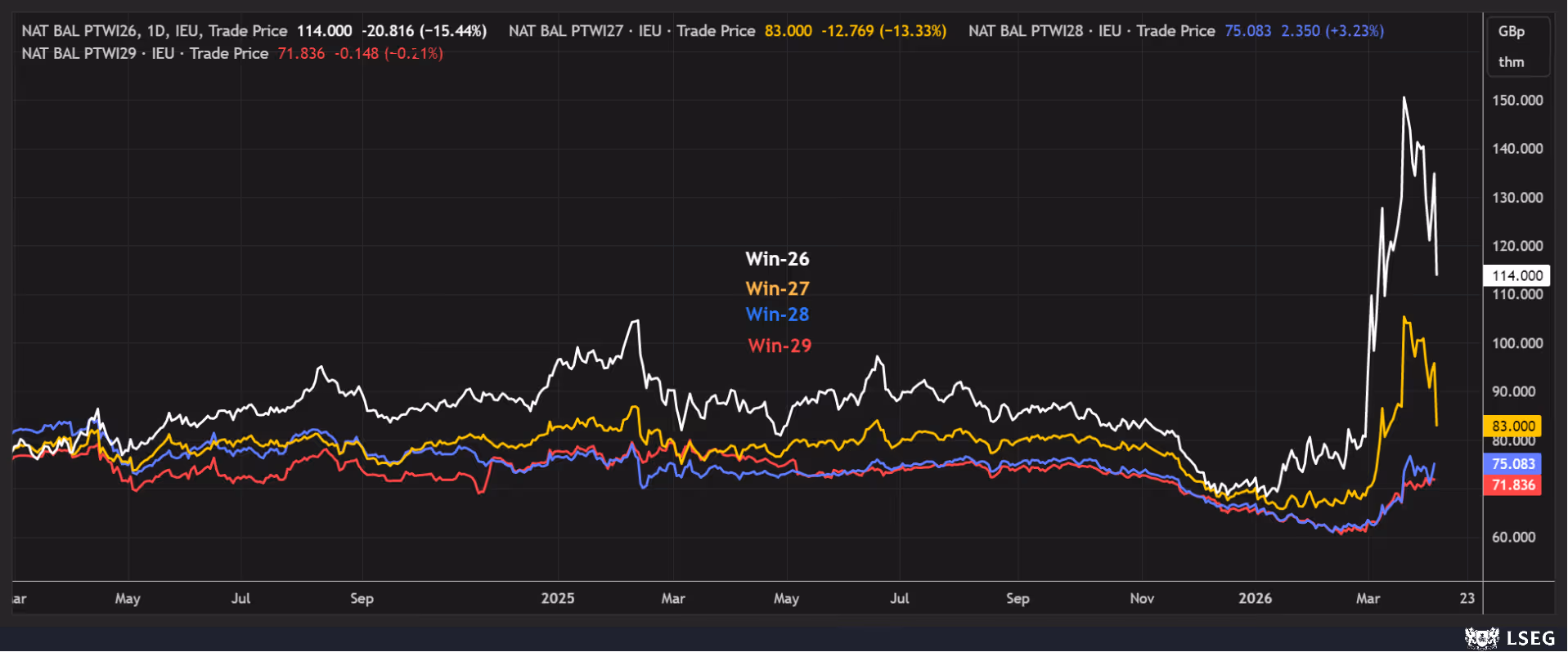 - Win-26 is at 114p/T, having closed at 134.8p/T yesterday, down 20.8p/T.
